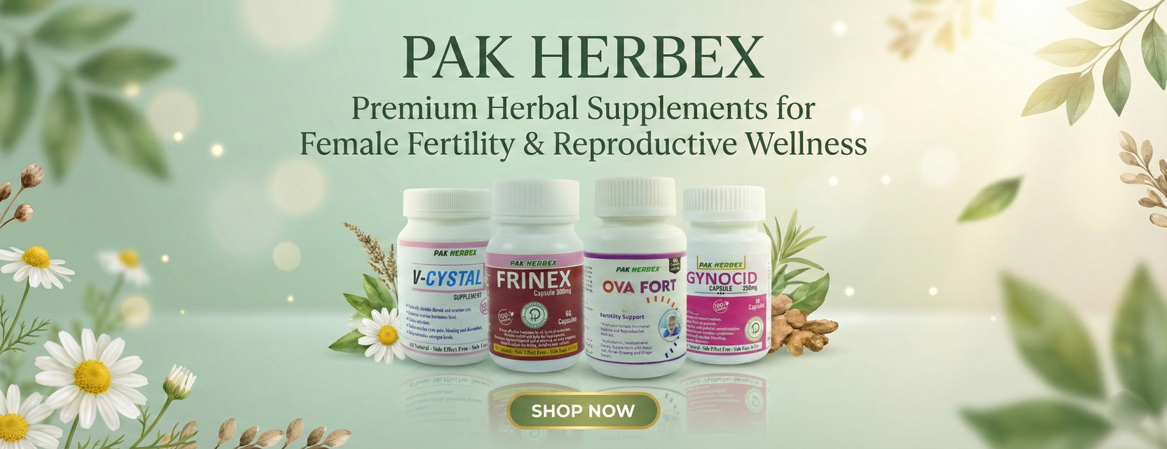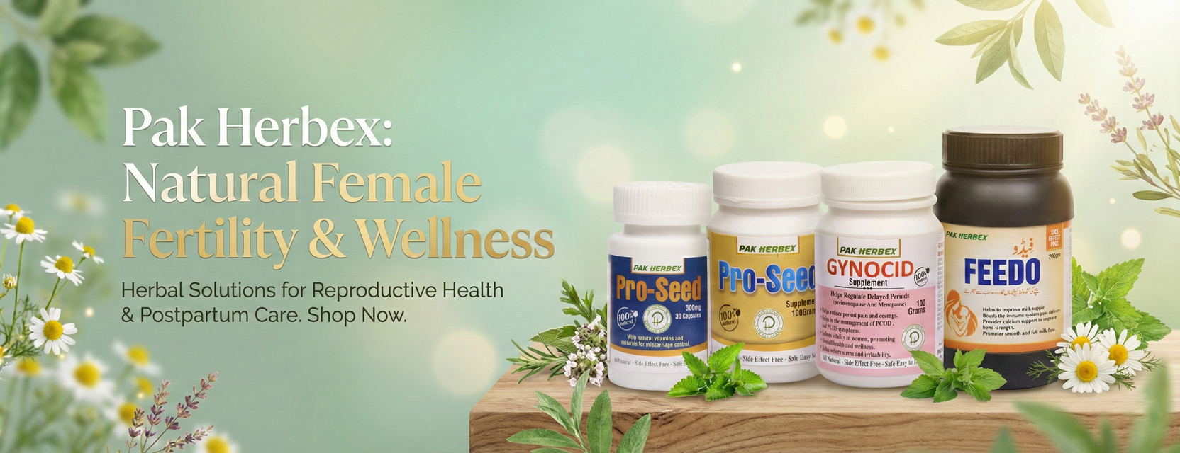 Women’s Health line empowers reproductive harmony with natural remedies such as V-Cystal, Gynocid, Pro-Seed, Frinex, and Feedo.