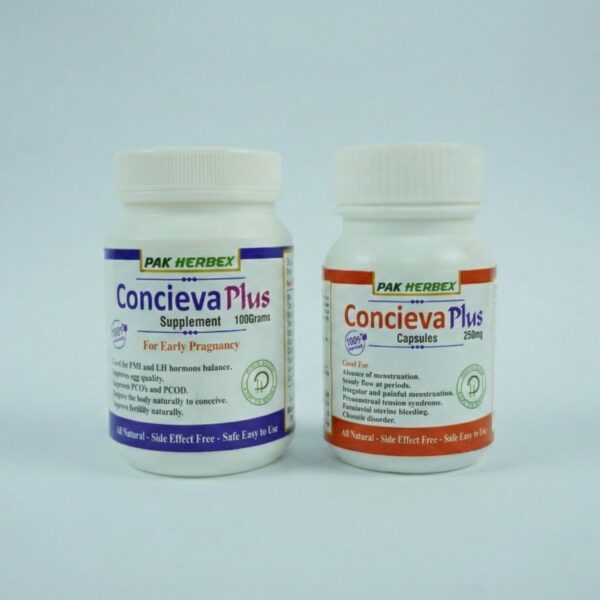 Concievea Plus is a natural wellness supplement formulated to support women’s menstrual health. It helps relieve menstrual discomfort, premenstrual tension, irregular or scanty flow, and uterine weakness. Traditionally used to support cycle regularity and overall female reproductive wellness.