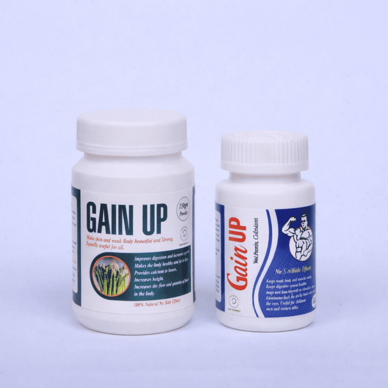 Gain Up Capsules are a high-calorie mass and energy supplement designed to support healthy weight and muscle gain. The formula helps stimulate appetite, promote muscle development, and support bone strength. It also enhances energy levels, vitality, and overall physical appearance for both men and women.