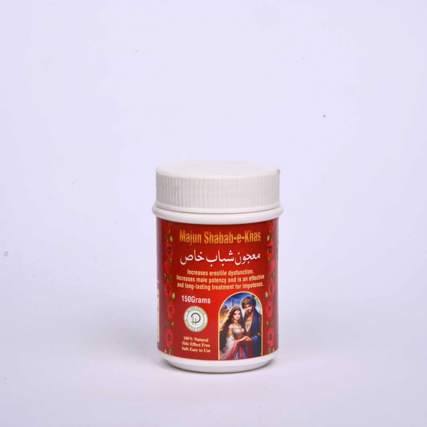 Majun Shabab-e-Khas is a traditional herbal formulation crafted to support male vitality and stamina. It helps improve reproductive wellness, promote natural stamina, and strengthen nerves and muscles. Known for its revitalizing properties, it may also aid endurance, blood circulation, and overall energy.