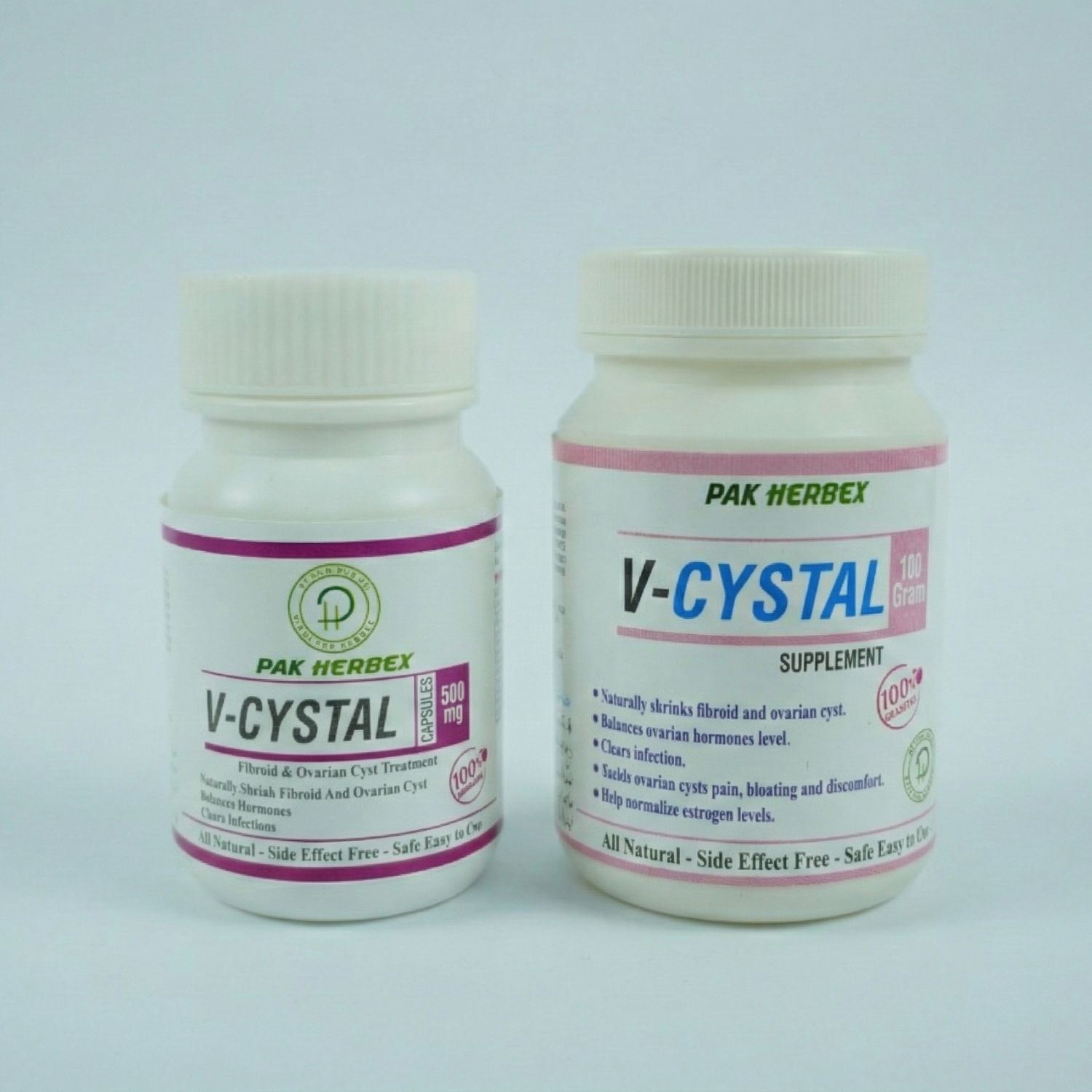 V-Cystal Capsules are an herbal formula designed to support women’s reproductive and hormonal health. Traditionally used for fibroid and ovarian cyst management, they help balance hormones, reduce internal infections, support uterine health, and promote natural reproductive tract cleansing.